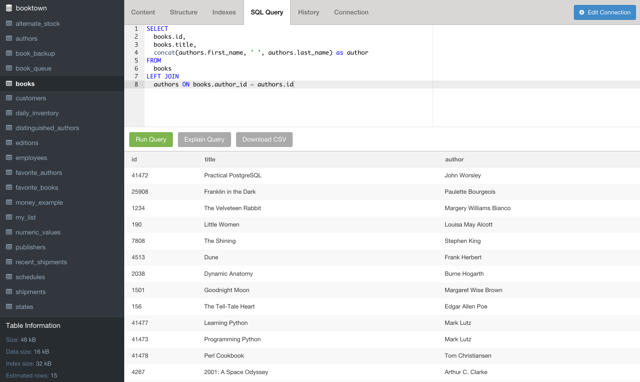 - Browse tables and table data